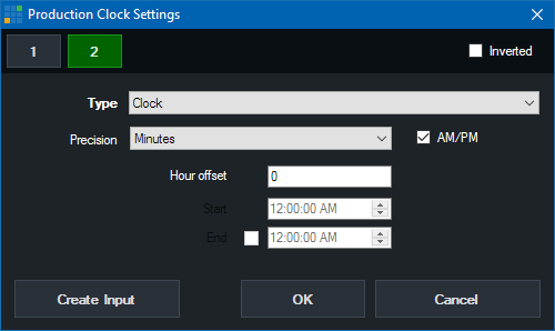 Note: Only one Production Clocks input can be created at a time.