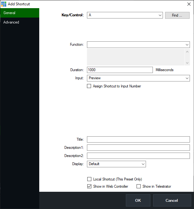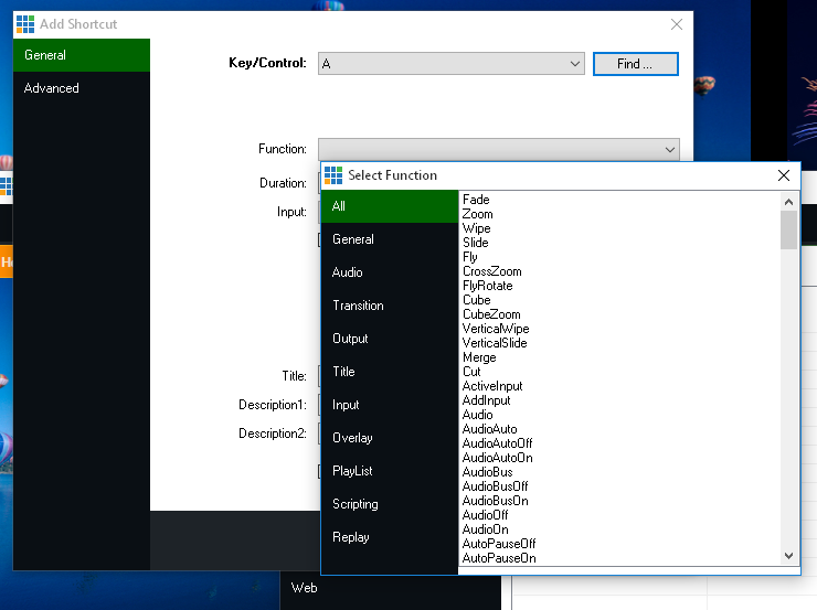 From the vMix Settings window click the Shortcuts tab and then click Add